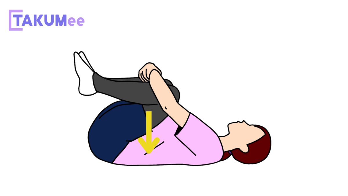- 仰向けになり、股関節を曲げて両膝を持ち上げる