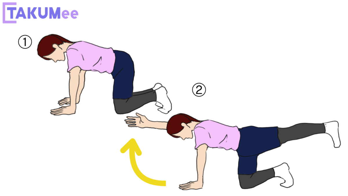 (手はグーでもパーでもOK) - つま先を立てて、身体を一直線に支える