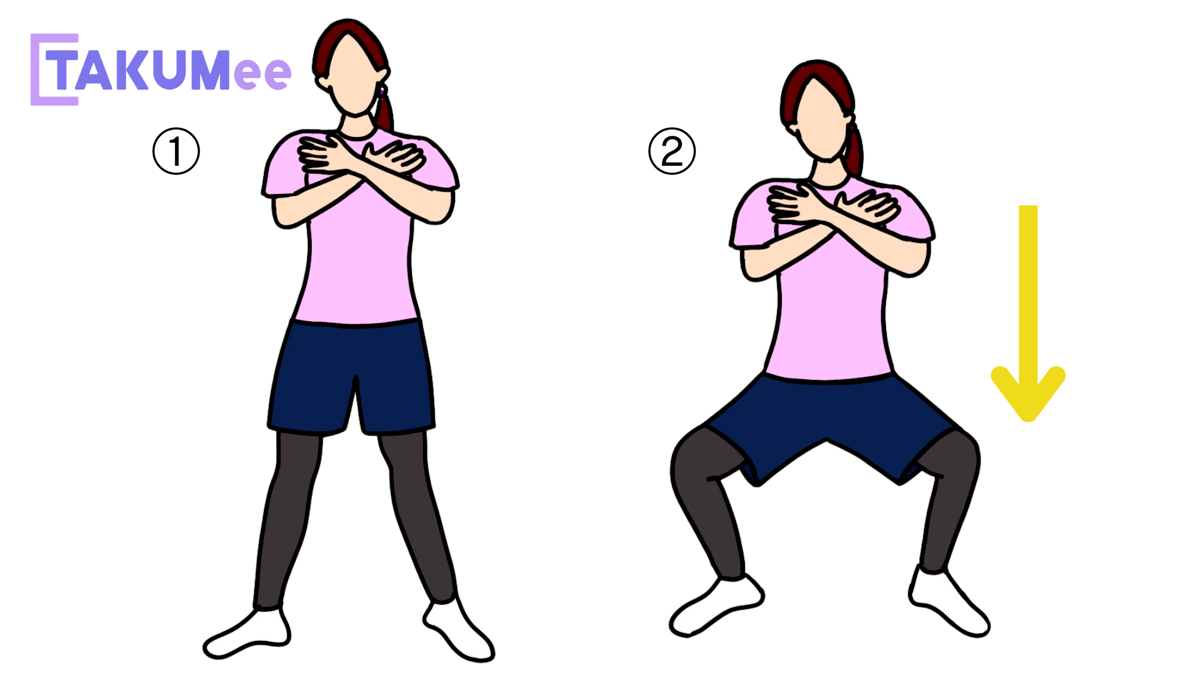 - 足を肩幅よりやや広めに開ける